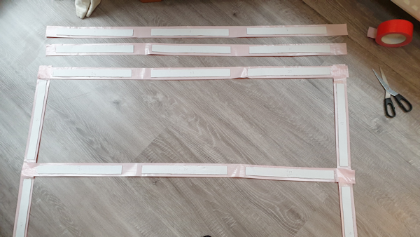 - I also attached the corners to the floor to allow some tension to keep the tape strips taught.